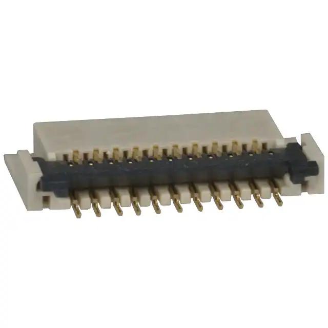 This is manufactured by Hirose Electric Co Ltd. The manufacturer part number is FH23-21S-0.3SHW(10). It is assigned with possible HTSUS value of 8536.69.4051. The product is rohs compliant. The product also features robust liquid crystal polymer (lcp) housing material. The product has -55°c ~ 85°c operating temperature range. It is 0.049" (1.25mm) high above board. The actuator has a classic black colour. The product carries possible position value of 21. The product has a locking feature of flip lock. Moreover, the product has a nominal 30v voltage rating. It is a flat flex fpc type. It has an integral beige housing colour. It carries ul94 v-0 of material flammability rating. It is shipped in tape & reel (tr). Furthermore, the product is galvanized with excellent gold contact finishing. Its typical moisture sensitivity level is 1 (unlimited). The product features solder termination style. It provides best efficiency with mating cycles of 10. Additionally, the product's output is 0.3a It has built-in connector or contact of contacts, bottom. The splendid features of the product include low insertion force (lif). The product is available in surface mount, right angle configuration. The product fh23, is a highly preferred choice for users. The product has an FFC, FCB thickness of 0.20mm. Moreover, the product is 0.012" (0.30mm) The product is made from sturdy phosphor bronze materials. The actuator is designed from sturdy liquid crystal polymer (lcp) material. The cable end is a type of tapered end. The product is designated with the ear99 code number