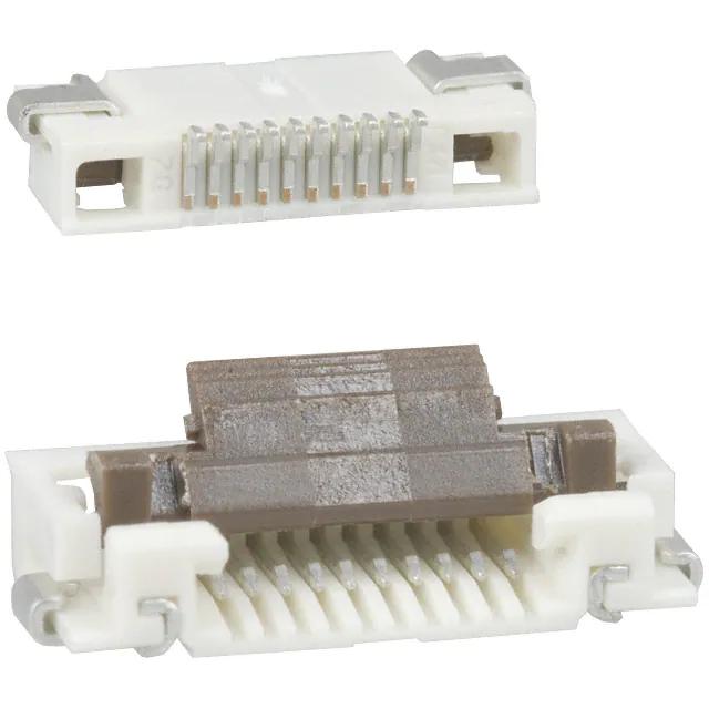 This is manufactured by Molex. The manufacturer part number is 0528921095. It is assigned with possible HTSUS value of 8536.69.4051. The product is rohs3 compliant. The product also features robust polyamide (pa46), nylon 4/6 housing material. The product has -25°c ~ 85°c operating temperature range. It is 0.079" (2.00mm) high above board. The product carries possible position value of 10. The product has a locking feature of flip lock. Moreover, the product has a nominal 50v voltage rating. In addition, it is reach unaffected. It is a flat flex ffc, fpc type. It carries ul94 v-0 of material flammability rating. It is shipped in tape & reel (tr). Furthermore, the product is galvanized with excellent tin bismuth contact finishing. Its typical moisture sensitivity level is 1 (unlimited). The product features solder termination style. It provides best efficiency with mating cycles of 20. Additionally, the product's output is 0.5a It has built-in connector or contact of contacts, bottom. The splendid features of the product include solder retention, zero insertion force (zif). The product is available in surface mount, right angle configuration. The product easy-on 52892, is a highly preferred choice for users. The product has an FFC, FCB thickness of 0.30mm. Moreover, it corresponds to 052892, a base product number of the product. Moreover, the product is 0.020" (0.50mm) The product is made from sturdy phosphor bronze materials. The actuator is designed from sturdy polyphenylene sulfide (pps), glass filled material. The cable end is a type of straight, tapered end. The product is designated with the ear99 code number