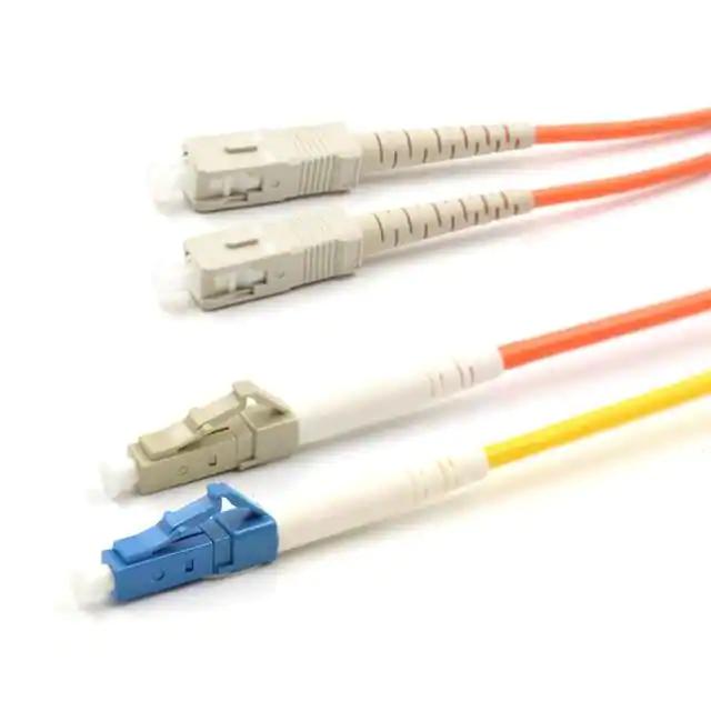 This is manufactured by Fibertronics. The manufacturer part number is MCC-KD6D30V01M. The product is rohs non-compliant. Its jacket is made from highly insulated poly-vinyl chloride (pvc) materials. It first connector includes lc/upc duplex. The second connector is sc/upc duplex. It comes in multimode, duplex, om1 configuration. Allows 0.40db of insertion loss. The product has an integral 3.3' (1.0m) overall length. In addition, it is vendor undefined. The diameter of the cable includes 0.12" (3.0mm). It is shipped in retail package. This connector has a classic blue colour. Available in orange colour. It has a 62.5/125 fiber.