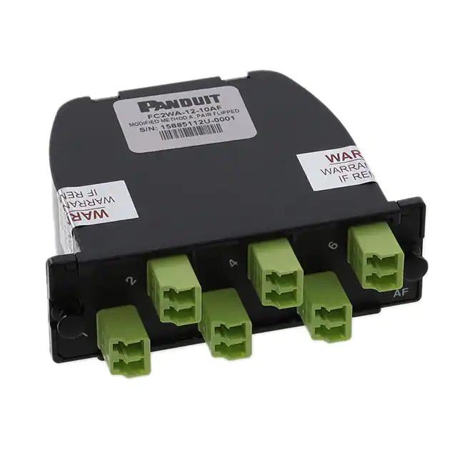 This is manufactured by Panduit Corp. The manufacturer part number is FC2WA-12-10AF. It is assigned with possible HTSUS value of 8536.70.0000. The product is rohs3 compliant. It has conversion specifications from lc receptacle. The product has 0°c ~ 70°c operating temperature range. It comes in adapter configuration. Can effectively be converted to mtp receptacle. In addition, it is reach unaffected. It is shipped in bulk. Its typical moisture sensitivity level is not applicable. Mode Options - multimode. It has a long 8 weeks standard lead time. The product is available in free hanging (in-line) configuration. It has a classic green colour. The product quicknet™, is a highly preferred choice for users. It has a 12-plex mode. Moreover, it corresponds to fc2wa, a base product number of the product. The product is designated with the ear99 code number