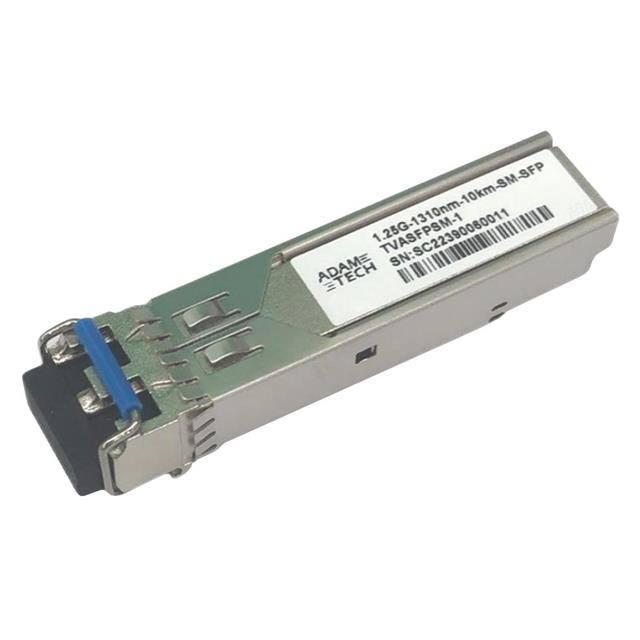 This is manufactured by Adam Tech. The manufacturer part number is TVASFPSM-1. It is assigned with possible HTSUS value of 8517.62.0090. The product is rohs3 compliant. In addition, it is reach unaffected. The product is widely employed in ethernet, fibre channel. It has a maximised data speed rate of 1.25gbps. It is shipped in tray. lc duplex Connector type offer robust functionality. Its typical moisture sensitivity level is not applicable. It has a long 10 weeks standard lead time. The product is available in pluggable, sfp configuration. It has optimum voltage supply of 3.135v ~ 3.465v. It has a typical wavelength of 1310nm. Moreover, it corresponds to tvasfpsm, a base product number of the product. The product is designated with the 5a991b5a code number