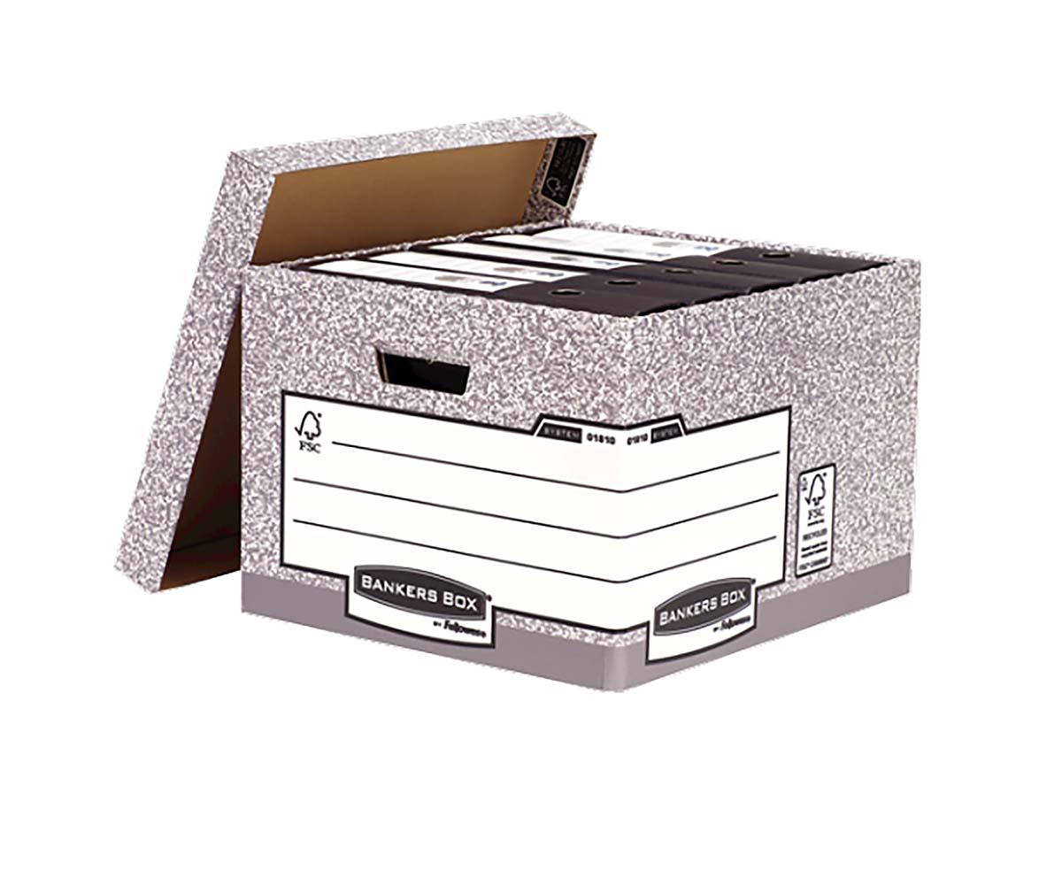 This is File Storage Box manufactured by Fellowes. The manufacturer part number is 1840. The product is made from highly stable and reliable recycled board. In addition, the height is 287mm. The product comes in 430mm depth.