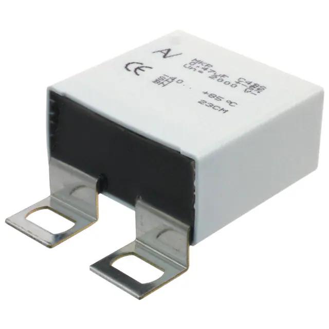 This is manufactured by KEMET. The manufacturer part number is C4BSWBX3470ZAFJ. The given dimensions of the product include 41.5 x 20 x 40mm. The product is available in solder lug configuration. The product c4bs, is a highly preferred choice for users. Its accurate length is 41.5mm. In addition, the height is 40mm. It provides a 470nf of capacitance value. The product comes in 20mm depth. It carries a 2 kv dc, 700 v ac of voltage. Whereas, the minimum operating temperature of the product is -40°c. It has a maximum operating temperature of +85°c. It features ±5% of tolerance value. 2000v (2kv) of DC voltage rating. It is assigned with possible HTSUS value of 8532.25.0030. The product is rohs3 compliant. It carries ESR (Equivalent Series Resistance) of 5.1 mohms. It provides a 0.47 µf of capacitance value. The product has -40°c ~ 85°c operating temperature range. Moreover, the product comes in [Package/ Case]. It has the maximum seated height of 1.575" (40.00mm) Moreover, the product is constructed from highly polypropylene (pp), metallized dielectric material. The product exhibits 700v of AC voltage rating. In addition, it is reach unaffected. The product is widely employed in dc link, dc filtering; snubber. It is shipped in bulk. The product's diameters include 1.634" l x 0.787" w (41.50mm x 20.00mm). The product features screw terminals termination style. It has a long 22 weeks standard lead time. Its typical moisture sensitivity level is 1 (unlimited). The product is available in chassis mount configuration. It is assigned with 1.004" (25.50mm) of lead spacing. Moreover, it corresponds to c4bswb, a base product number of the product. The product is designated with the ear99 code number