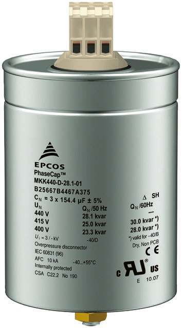 This is 137 (x3)μF Polypropylene Capacitor PP 440 V ac -5 → +10% Tolerance B25667 Series manufactured by EPCOS. The manufacturer part number is B25667C4417A375. The given dimensions of the product include 136 x 200mm. The product is available in stud mount configuration. The product b25667c, is a highly preferred choice for users. In addition, the height is 200mm. It provides a 3 x 137µf of capacitance value. It carries a 440v ac of voltage. Whereas, the minimum operating temperature of the product is -40°c. It has a maximum operating temperature of +55°c. It features -5 → +10% of tolerance value. The terminal is a screw mount type.