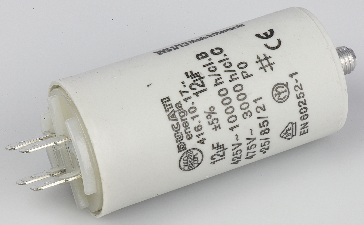 This is 12μF Polypropylene Capacitor PP 450V ac ±5% Tolerance Stud Mount 4.16.10 Series manufactured by Ducati Energia. The manufacturer part number is 4.16.10.17.64. The given dimensions of the product include 36 (dia.) x 70mm. The product is available in stud mount configuration. The product 4.16.10, is a highly preferred choice for users. In addition, the height is 70mm. It provides a 12µf of capacitance value. It carries a 450v ac of voltage. It features ±5% of tolerance value. The terminal is a stud mount type.