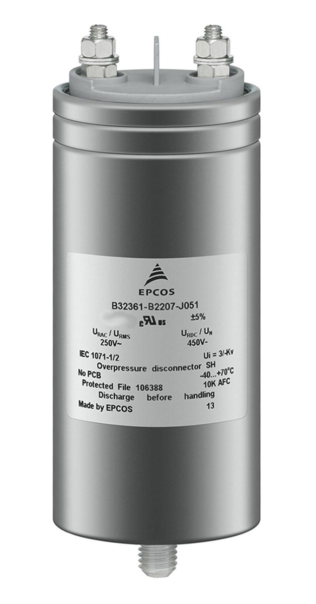 This is 70μF Polypropylene Capacitor PP 680V ac ±5% Tolerance B32361 Series manufactured by EPCOS. The manufacturer part number is B32361A4706J080. The given dimensions of the product include 63.5 (dia.) x 142 hmm. The product b32361, is a highly preferred choice for users. In addition, the height is 142mm. It provides a 70µf of capacitance value. It carries a 680v ac of voltage. Whereas, the minimum operating temperature of the product is -40°c. It has a maximum operating temperature of +70°c. It features ±5% of tolerance value. The terminal is a screw terminal type.
