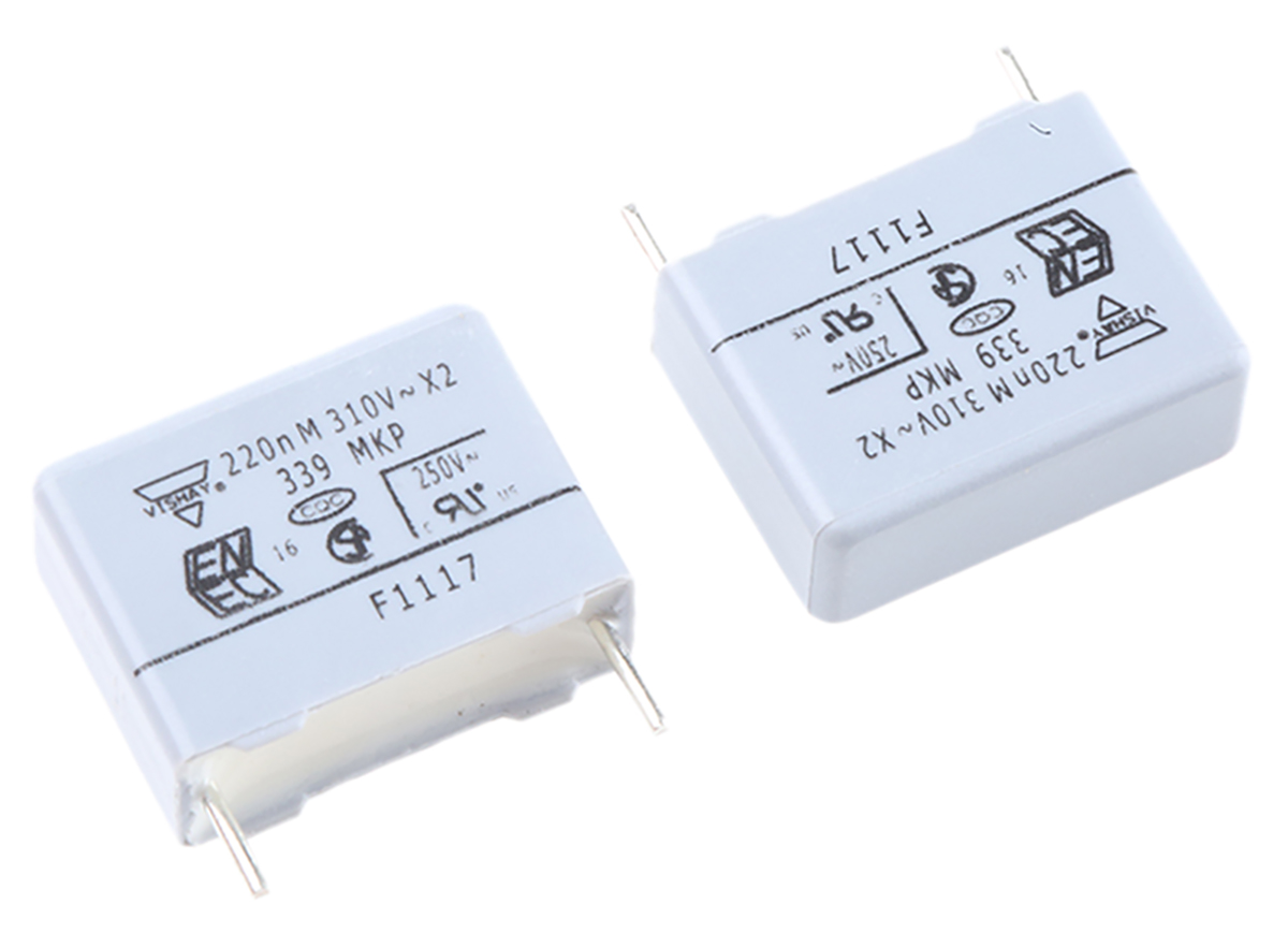 This is 220nF Polypropylene Capacitor PP 310V ac ±20% Tolerance Through Hole MKP 339 Series manufactured by Vishay. The manufacturer part number is 2222 339 20224. The given dimensions of the product include 17.5 x 7 x 13.5mm. The product mkp 339, is a highly preferred choice for users. Its accurate length is 17.5mm. In addition, the height is 13.5mm. It provides a 220nf of capacitance value. The product comes in 7mm depth. It carries a 310v ac of voltage. Whereas, the minimum operating temperature of the product is -55°c. The product is available in through hole configuration. It has a maximum operating temperature of +110°c. It features ±20% of tolerance value. The terminal is a through hole type.