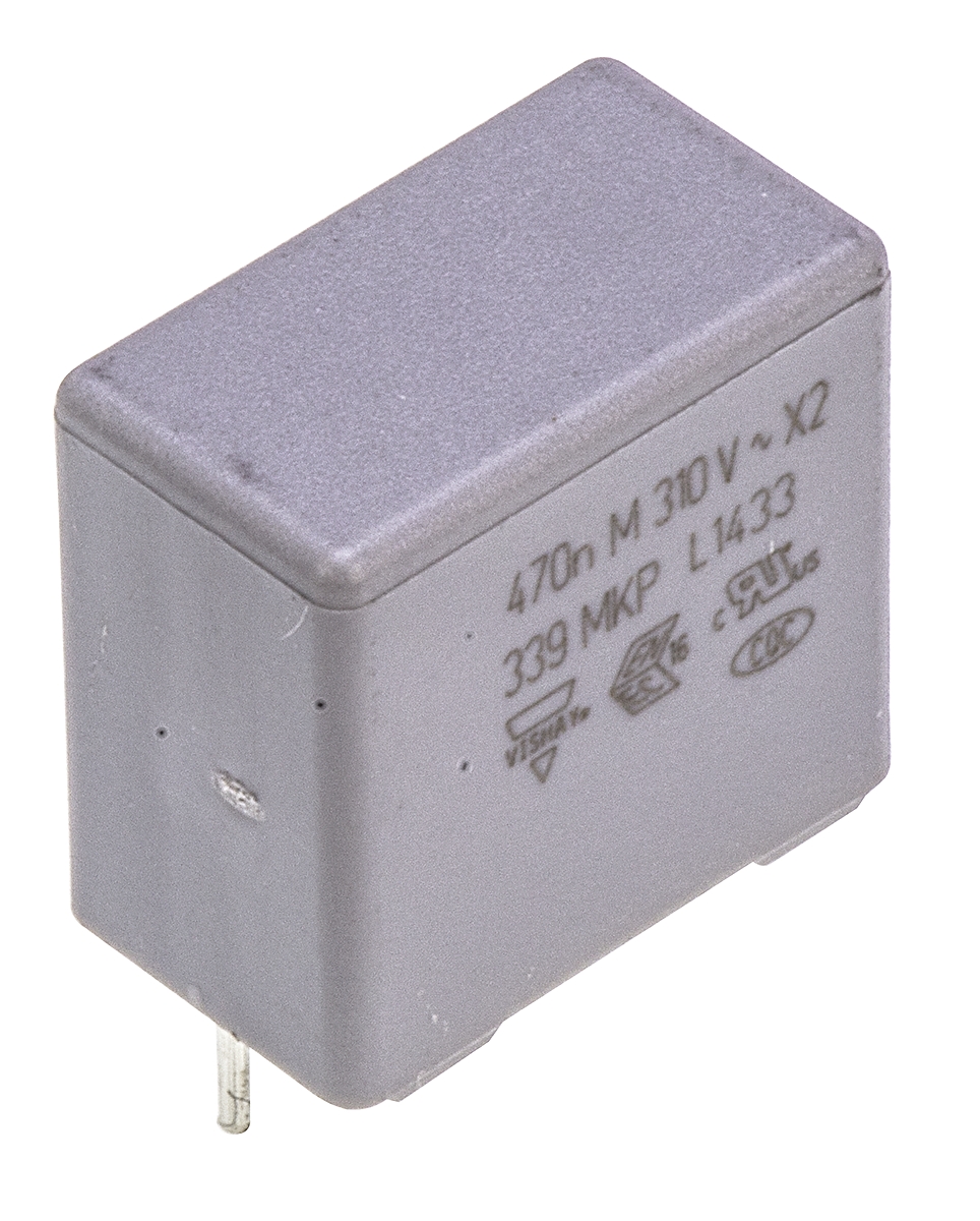 This is 470nF Polypropylene Capacitor PP 310V ac ±20% Tolerance Through Hole MKP 339 Series manufactured by Vishay. The manufacturer part number is BFC233920474. The given dimensions of the product include 17.5 x 10 x 16.5mm. The product mkp 339, is a highly preferred choice for users. Its accurate length is 17.5mm. In addition, the height is 16.5mm. It provides a 470nf of capacitance value. The product comes in 10mm depth. It carries a 310v ac of voltage. Whereas, the minimum operating temperature of the product is -55°c. The product is available in through hole configuration. It has a maximum operating temperature of +110°c. It features ±20% of tolerance value. The terminal is a through hole type.