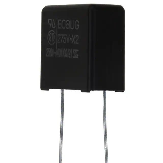 This is manufactured by Panasonic Electronic Components. The manufacturer part number is ECQ-U2A104MG. It is rated with x2. It is assigned with possible HTSUS value of 8532.25.0010. The product exhibits 275v of AC voltage rating. It provides a 0.1 µf of capacitance value. The product has -40°c ~ 100°c operating temperature range. Moreover, the product comes in [Package/ Case]. It features ±20% of tolerance value. It has the maximum seated height of 0.610" (15.50mm) Moreover, the product is constructed from highly polyester, metallized dielectric material. The product is widely employed in emi, rfi suppression. It is shipped in bulk. The product's diameters include 0.591" l x 0.315" w (15.00mm x 8.00mm). The product features pc pins termination style. Its typical moisture sensitivity level is not applicable. The product is available in through hole configuration. The product ecq-ug, is a highly preferred choice for users. It is assigned with 0.492" (12.50mm) of lead spacing. Moreover, it corresponds to ecq-u2, a base product number of the product. The product is designated with the ear99 code number