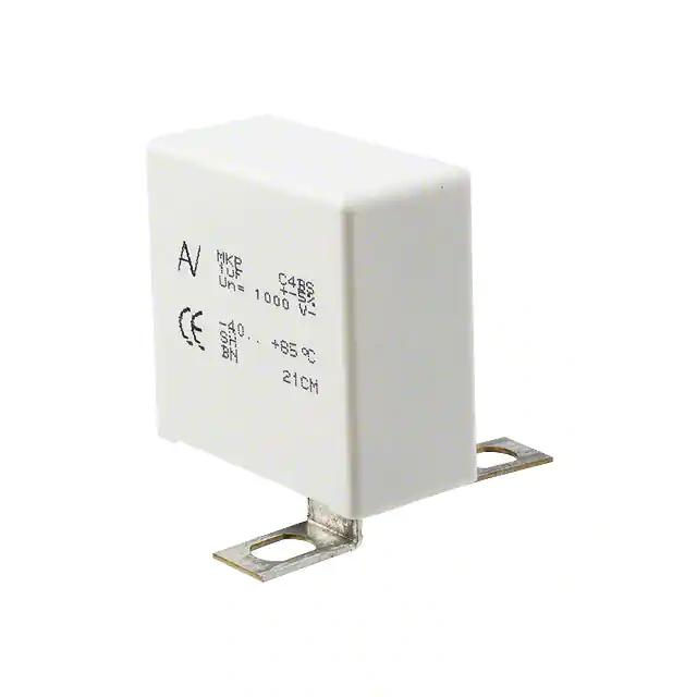 This is 1μF Polypropylene Capacitor PP 550 V ac 850 V dc ±5% Tolerance Solder Lug C4BS Series manufactured by KEMET. The manufacturer part number is C4BSMBX4100ZEFJ. It has a maximum operating temperature of +85°c. The given dimensions of the product include 41.5 x 20 x 40mm. The product is available in solder lug configuration. The product c4bs, is a highly preferred choice for users. Its accurate length is 41.5mm. In addition, the height is 40mm. It provides a 1µf of capacitance value. The product comes in 20mm depth. It carries a 550 v ac, 850 v dc of voltage. Whereas, the minimum operating temperature of the product is -40°c. It features ±5% of tolerance value. 850v of DC voltage rating. It is assigned with possible HTSUS value of 8532.25.0020. The product is rohs3 compliant. It carries ESR (Equivalent Series Resistance) of 4 mohms. It provides a 1 µf of capacitance value. The product has -40°c ~ 85°c operating temperature range. Moreover, the product comes in [Package/ Case]. It has the maximum seated height of 1.575" (40.00mm) Moreover, the product is constructed from highly polypropylene (pp), metallized dielectric material. The product exhibits 550v of AC voltage rating. In addition, it is reach unaffected. The product is widely employed in dc link, dc filtering; snubber. It is shipped in bulk. The product's diameters include 1.634" l x 0.787" w (41.50mm x 20.00mm). The product features screw terminals termination style. It has a long 22 weeks standard lead time. Its typical moisture sensitivity level is not applicable. The product is available in chassis mount configuration. It is assigned with 1.299" (33.00mm) of lead spacing. Moreover, it corresponds to c4bsmb, a base product number of the product. The product is designated with the ear99 code number