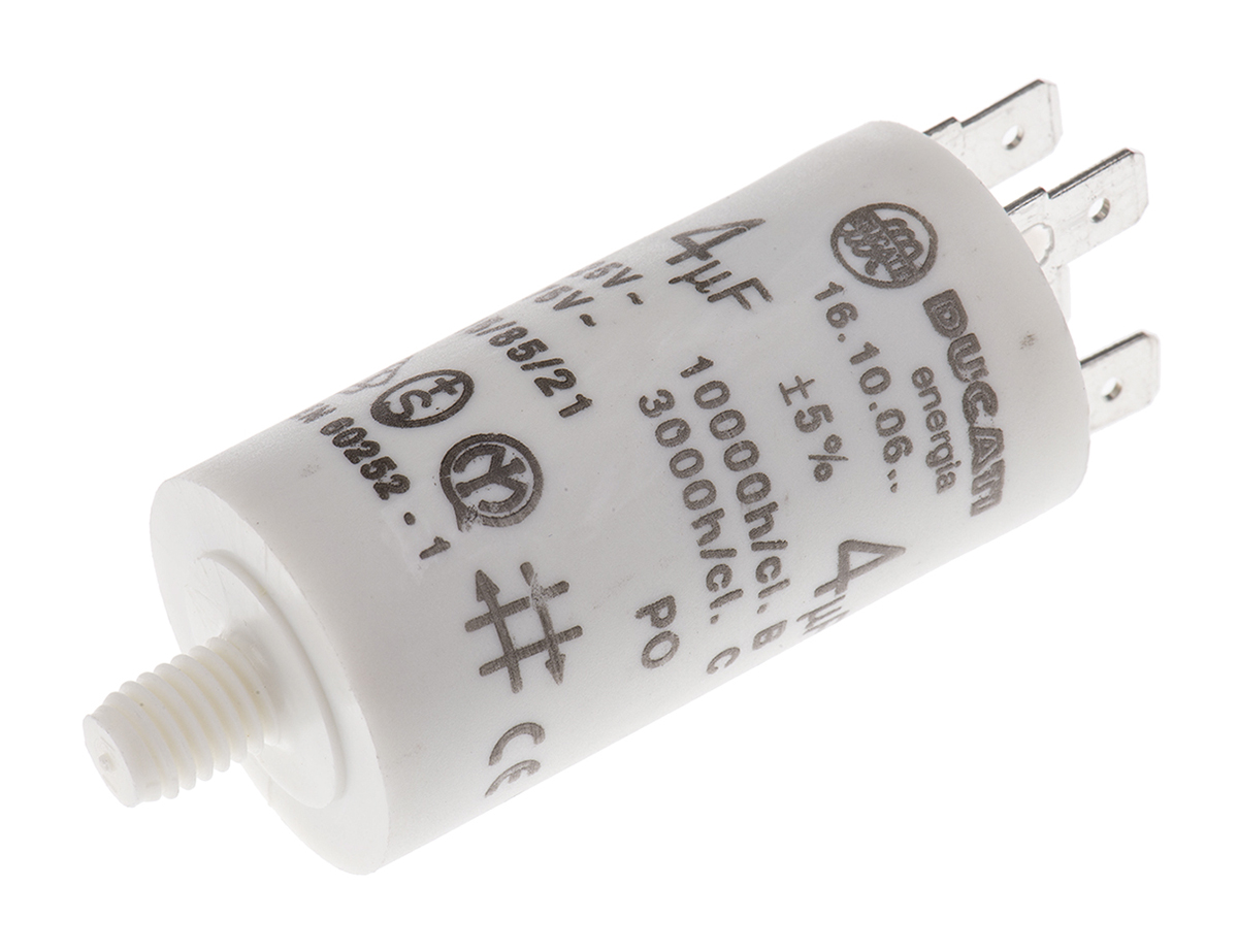 This is 4μF Polypropylene Capacitor PP 450V ac ±5% Tolerance Stud Mount 4.16.10 Series manufactured by Ducati Energia. The manufacturer part number is 4.16.10.06.64. The given dimensions of the product include 28 (dia.) x 55mm. The product is available in stud mount configuration. The product 4.16.10, is a highly preferred choice for users. In addition, the height is 55mm. It provides a 4µf of capacitance value. It carries a 450v ac of voltage. It features ±5% of tolerance value.