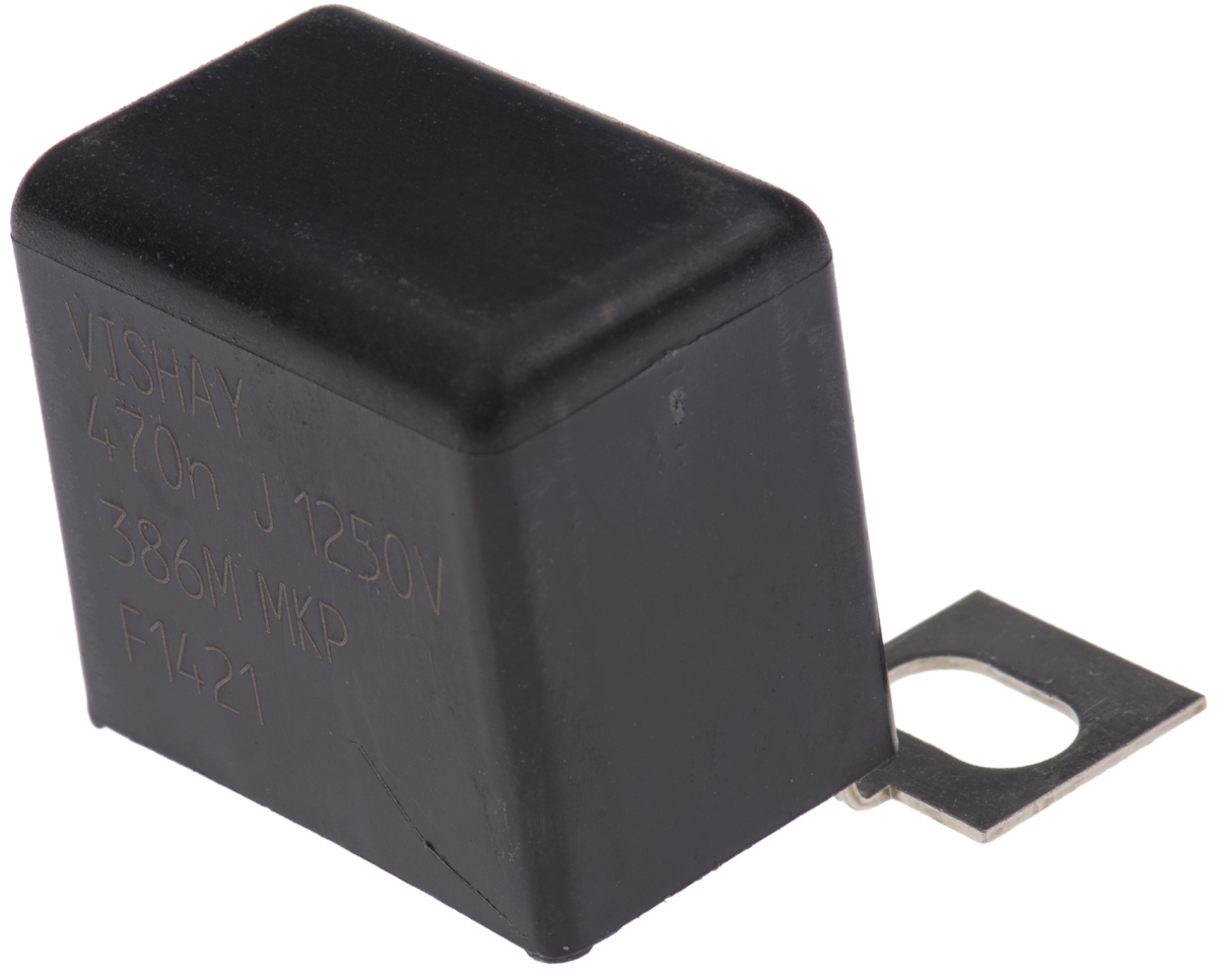 This is 470nF Polypropylene Capacitor PP 1.25kV dc ±5% Tolerance Screw Mount MKP386M Series manufactured by Vishay. The manufacturer part number is MKP386M447125JT5. The given dimensions of the product include 33.5 x 22 x 30.5mm. The product is available in screw mount configuration. The product mkp386m, is a highly preferred choice for users. Its accurate length is 33.5mm. In addition, the height is 30.5mm. It provides a 470nf of capacitance value. The product comes in 22mm depth. It carries a 1.25kv dc of voltage. Whereas, the minimum operating temperature of the product is -50°c. It has a maximum operating temperature of +85°c. It features ±5% of tolerance value. The terminal is a screw mount type.