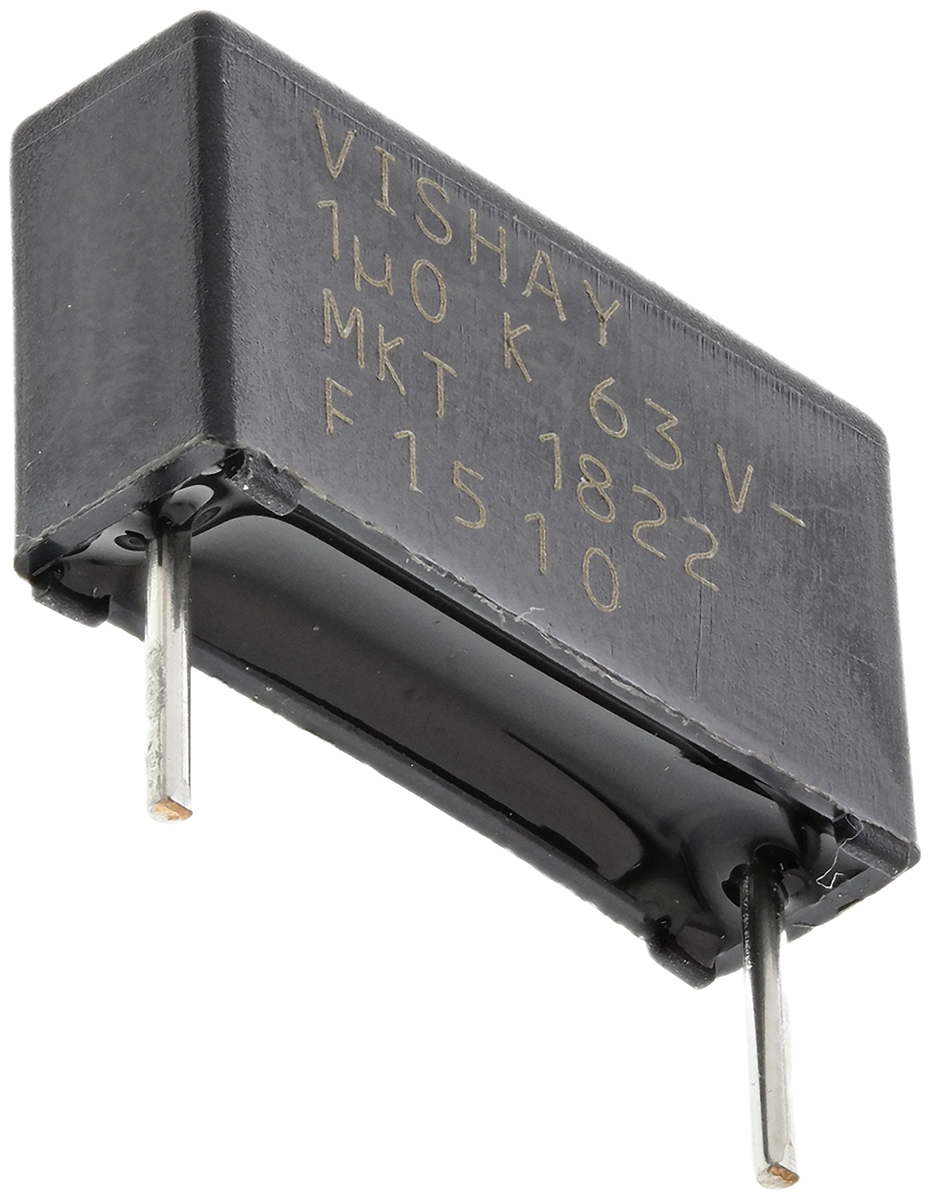 This is 1μF Polyester Capacitor PET 40 V ac 63 V dc ±10% MKT 1822 Series Through Hole manufactured by Vishay. The manufacturer part number is MKT 1822 510-065. The given dimensions of the product include 5.5 x 10.5 x 18mm. The product mkt 1822, is a highly preferred choice for users. Its accurate length is 18mm. In addition, the height is 10.5mm. It provides a 1µf of capacitance value. The product comes in 5.5mm depth. It carries a 40 v ac, 63 v dc of voltage. Whereas, the minimum operating temperature of the product is -55°c. The product is available in through hole configuration. It has a maximum operating temperature of +100°c. It features ±10% of tolerance value. The terminal is a through hole type.