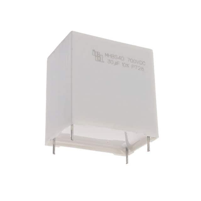This is manufactured by Nichicon. The manufacturer part number is MHBS405300KJSD. 700v of DC voltage rating. It is assigned with possible HTSUS value of 8532.25.0010. The product is rohs3 compliant. It carries ESR (Equivalent Series Resistance) of 3.4 mohms. It provides a 30 µf of capacitance value. The product has -40°c ~ 85°c operating temperature range. Moreover, the product comes in [Package/ Case]. It features ±10% of tolerance value. It has the maximum seated height of 1.772" (45.00mm) Moreover, the product is constructed from highly polypropylene (pp), metallized dielectric material. The product is widely employed in dc link, dc filtering; high frequency, switching. It is shipped in bulk. The product's diameters include 1.673" l x 1.181" w (42.50mm x 30.00mm). The product features pc pins termination style. It has a long 23 weeks standard lead time. Its typical moisture sensitivity level is not applicable. The product is available in through hole configuration. The product mhbs, is a highly preferred choice for users. It is assigned with 1.476" (37.50mm) of lead spacing. The product is designated with the ear99 code number