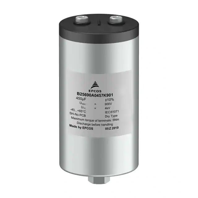 This is manufactured by EPCOS - TDK Electronics. The manufacturer part number is B25690A1427K101. 1100v (1.1kv) of DC voltage rating. It is assigned with possible HTSUS value of 8532.25.0070. The product is rohs3 compliant. It carries ESR (Equivalent Series Resistance) of 2.4 mohms. It provides a 420 µf of capacitance value. The product has -40°c ~ 85°c operating temperature range. Moreover, the product comes in [Package/ Case]. It features ±10% of tolerance value. It has the maximum seated height of 5.591" (142.00mm) Moreover, the product is constructed from highly polypropylene (pp), metallized dielectric material. In addition, it is reach unaffected. The product is widely employed in general purpose. It is shipped in bulk. The product's diameters include 3.346" dia (85.00mm). The product features threaded, female termination style. Its typical moisture sensitivity level is not applicable. The splendid features of the product include low esr; low esl; long life. The product is available in chassis mount configuration. The product mkp dc link - resin top, is a highly preferred choice for users. It is assigned with 1.260" (32.00mm) of lead spacing. The product is designated with the ear99 code number