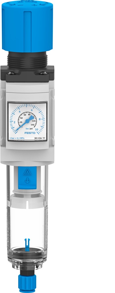 This is MS Filter Regulator 40μm G 1/4 Automatic manufactured by Festo. The manufacturer part number is MS4-LFR-1/4-D6-E-P-VC-AG-BAR-B.