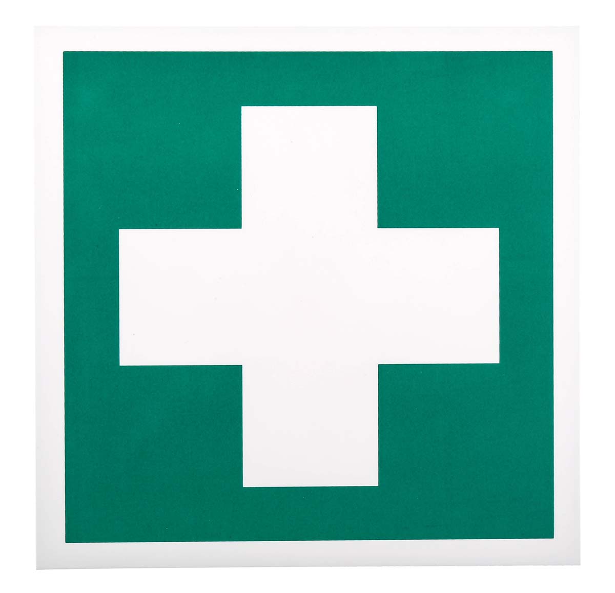 This is Plastic Green/White First Aid Sign 200 x 200mm manufactured by RS Pro. The manufacturer part number is 813-4634. The product is made from highly stable and reliable plastic. In addition, the height is 200 mm. Furthermore, the product is 200mm wide.