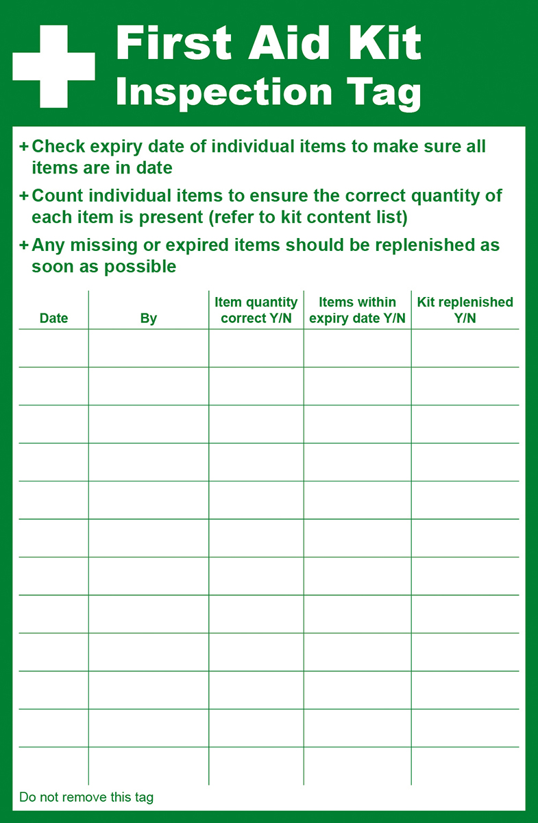 This is First Aid Kit Inspection Tag Pack of 10 manufactured by RS PRO. The manufacturer part number is 181-1489. In addition, the height is 130 mm. Furthermore, the product is 85mm wide.