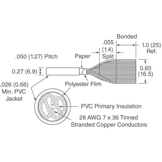 This is manufactured by 3M. The manufacturer part number is 3759/14 100. It is rated with ul style 20267. It is assigned with possible HTSUS value of 8544.49.3080. The product is rohs compliant. Its jacket is made from highly insulated poly-vinyl chloride (pvc) materials. It also features a 7 strands / 36 awg conductor strand. The product has -20°c ~ 80°c operating temperature range. Furthermore, the product is shielded with unshielded. It features 14 conductors. In addition, it is reach unaffected. It is shipped in bulk. Moreover, the product has a wire gauge of 28 awg. Its typical moisture sensitivity level is 1 (unlimited). Its accurate length is 25.0' (7.62m). The splendid features of the product include zippable. The conductor is made from copper, tinned material. The product 3759, is a highly preferred choice for users. It is a typical flat cable, round jacket cable. It carries a 300 v of voltage. Moreover, the product is 0.050" (1.27mm) The product is designated with the ear99 code number It comes in nice black colour.