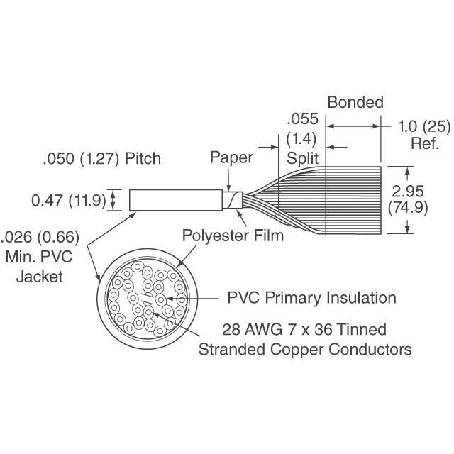 This is manufactured by 3M. The manufacturer part number is 3759/60 100. It is rated with ul style 20267. It is assigned with possible HTSUS value of 8544.49.3080. The product is rohs compliant. Its jacket is made from highly insulated poly-vinyl chloride (pvc) materials. It also features a 7 strands / 36 awg conductor strand. The product has -20°c ~ 80°c operating temperature range. Furthermore, the product is shielded with unshielded. It features 60 conductors. In addition, it is reach unaffected. It is shipped in spool. Moreover, the product has a wire gauge of 28 awg. Its typical moisture sensitivity level is 1 (unlimited). Its accurate length is 100.0' (30.48m). It has a long 17 weeks standard lead time. The splendid features of the product include zippable. The conductor is made from copper, tinned material. The product 3759, is a highly preferred choice for users. It is a typical flat cable, round jacket cable. It carries a 300 v of voltage. Moreover, the product is 0.050" (1.27mm) The product is designated with the ear99 code number Moreover, it corresponds to 3759, a base product number of the product. It comes in nice black colour.
