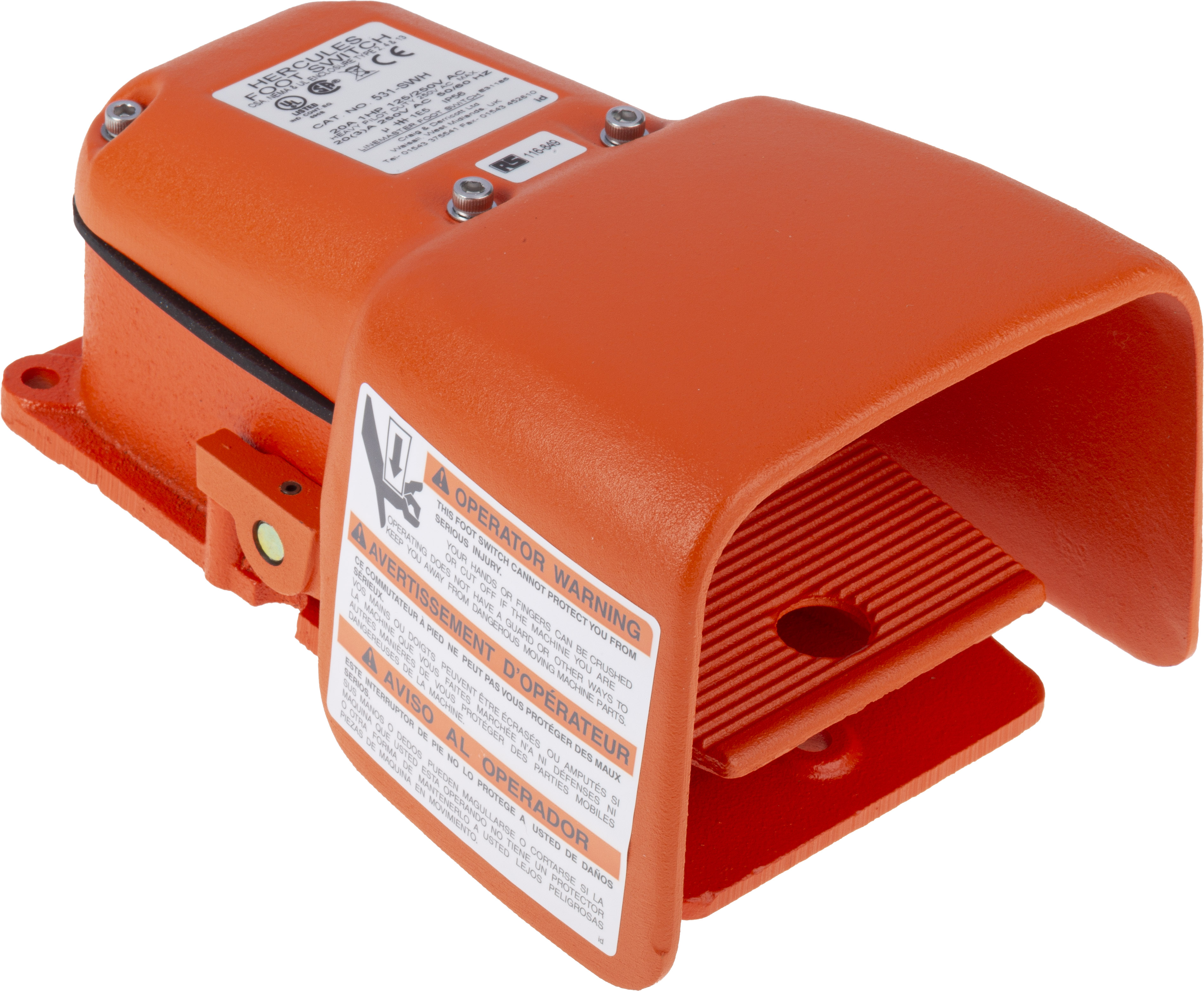 This is Heavy Duty Foot Switch Cast Iron Momentary SPDT 20 A @ 250 V ac 250V IP56 manufactured by RS Pro. The manufacturer part number is 116-849. The given dimensions of the product include 228.6 x 149.22 x 111mm. In addition, the height is 111mm. Furthermore, the product is 149.22mm wide. Its accurate length is 228.6mm.