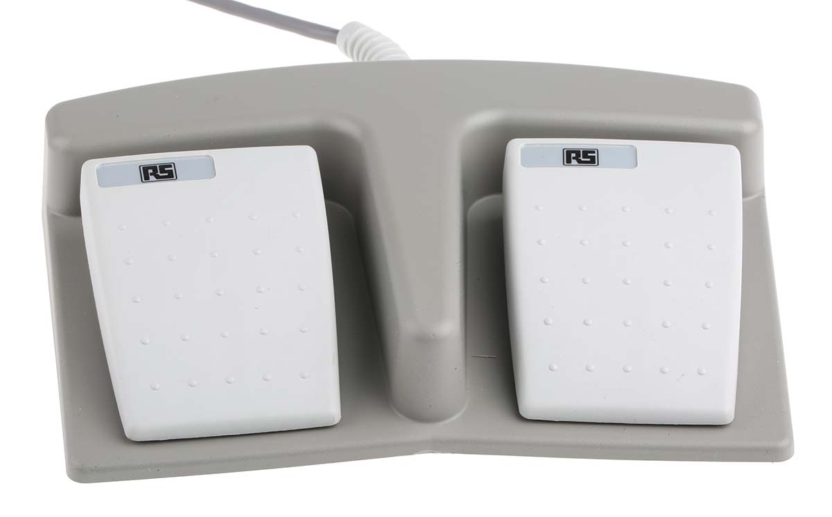 This is General Purpose Foot Switch Thermoplastic Momentary 2 X SPST 1.75 A 24V IPX7 manufactured by RS Pro. The manufacturer part number is 513-5145. The product is made from sturdy silver materials.