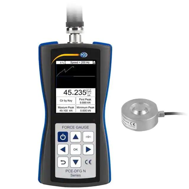 This is manufactured by PCE Instruments. The manufacturer part number is PCE-DFG NF 50K. It features a remarkable tft display. It is shipped in retail package. Features 5 resolution. The product pce-dfg, is a highly preferred choice for users. The product's sampling rate at per second is 1600. The product is not applicable. In addition, it is vendor undefined. It provides high accuracy of ±0.5%. It comes in force gauge configuration. The product is designated with the ear99 code number