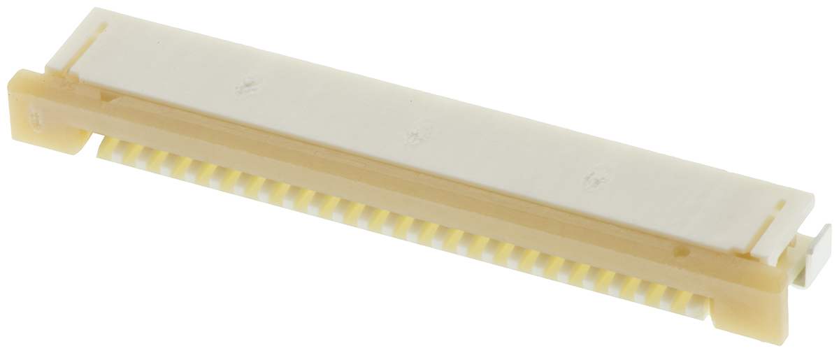 This is FFC/FPC SMT Series 1mm Pitch 24 Way Right Angle SMT Female FPC Connector ZIF Bottom Contact manufactured by Molex. The manufacturer part number is 52271-2479. The product contains 24 contacts. The product has a current rating of 500ma. The product is available in surface mount configuration. Moreover, the product has a nominal 50 v ac/dc voltage rating. In addition, female is the available "Gender" of the product. Moreover, the product is 1mm The product also features robust nylon housing material. It comes in 1 of rows. The product ffc/fpc smt, is a highly preferred choice for users. The product is made from sturdy phosphor bronze materials. It has a maximum operating temperature of +85°c. Whereas, the minimum operating temperature of the product is -40°c.