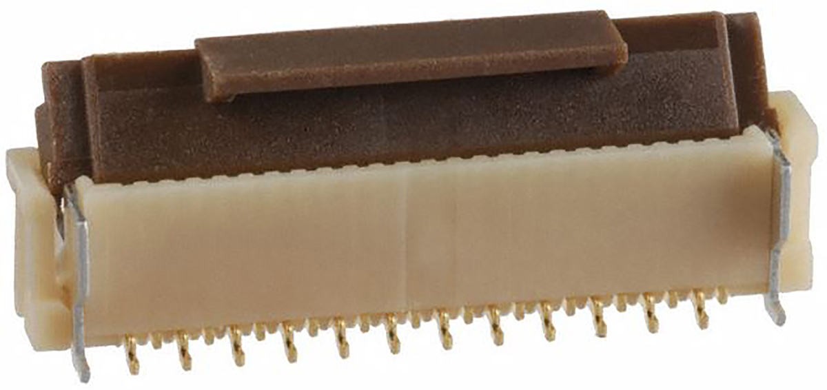 This is FH12 0.5mm Pitch 24 Way Straight SMT Female FPC Connector ZIF Vertical Contact manufactured by Hirose. The manufacturer part number is FH12-24S-0.5SV(55). The product has a current rating of 500ma. The product is available in surface mount configuration. Moreover, the product has a nominal 50 v ac voltage rating. In addition, female is the available "Gender" of the product. Moreover, the product is 0.5mm The product also features robust pps·polyamide housing material. It comes in 1 of rows. The product fh12, is a highly preferred choice for users. The product contains 24 contacts. It has a maximum operating temperature of +85°c. Whereas, the minimum operating temperature of the product is -40°c. The product is made from sturdy phosphor bronze materials.