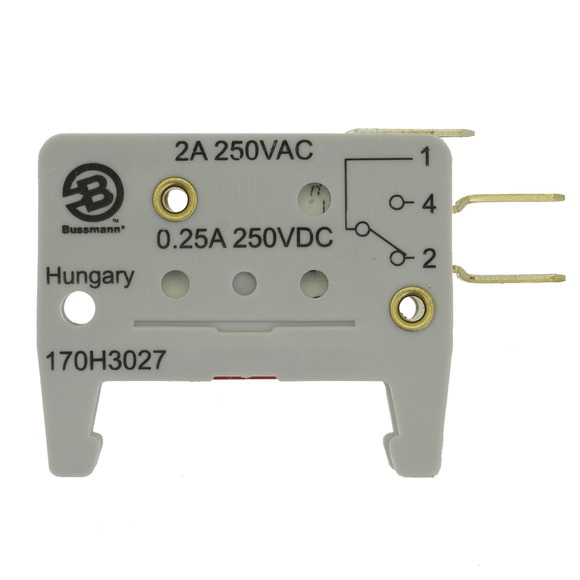 This is Cooper Bussmann Fuse Holder Accessories Microswitch manufactured by Eaton Bussmann Series. The manufacturer part number is 170H3027.