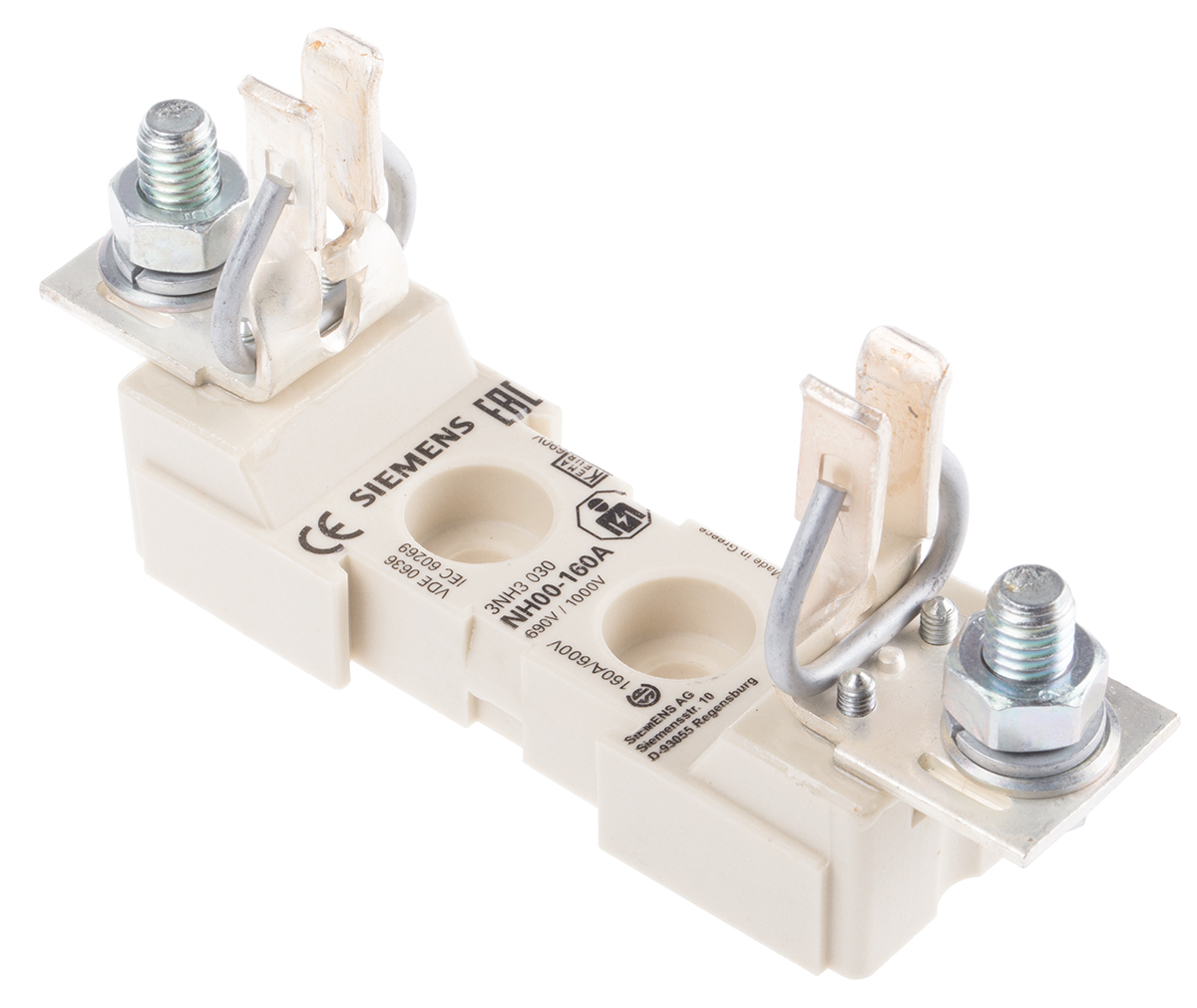 This is 160A Rail Mount Fuse Holder for 00 Fuse 690V ac manufactured by Siemens. The manufacturer part number is 3NH3030. The product has a current rating of 160a. Moreover, the product has a nominal 690v ac voltage rating. A fuse with a 00 size. It has equipped with 1p poles. The terminal is a pad-type type.