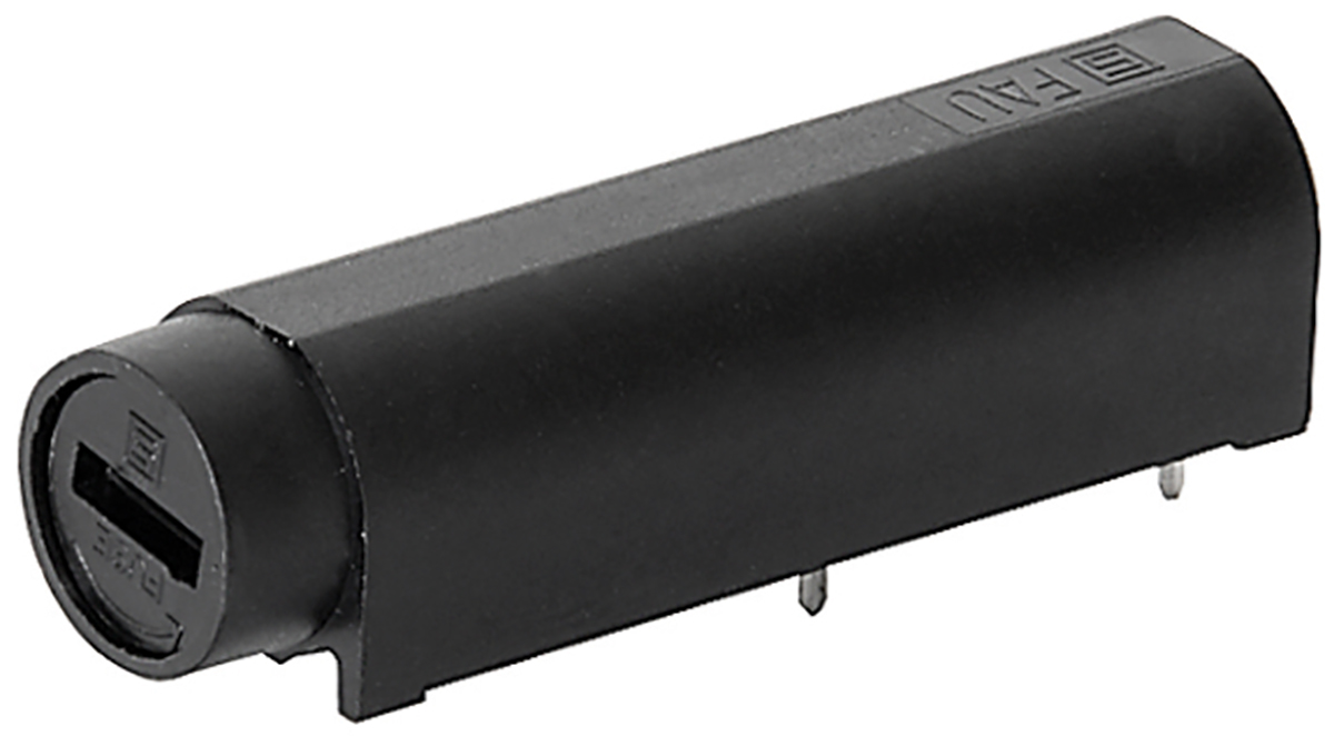This is 10A Slotted Cap PCB Mount Fuse Holder for 5 x 20mm Cartridge Fuse 250V ac manufactured by Schurter. The manufacturer part number is 0031.3571. The product has a current rating of 10a. Moreover, the product has a nominal 250v ac voltage rating. A fuse with a 5 x 20mm size. The terminal is a solder type. The product is made from sturdy tin plated copper alloy materials.