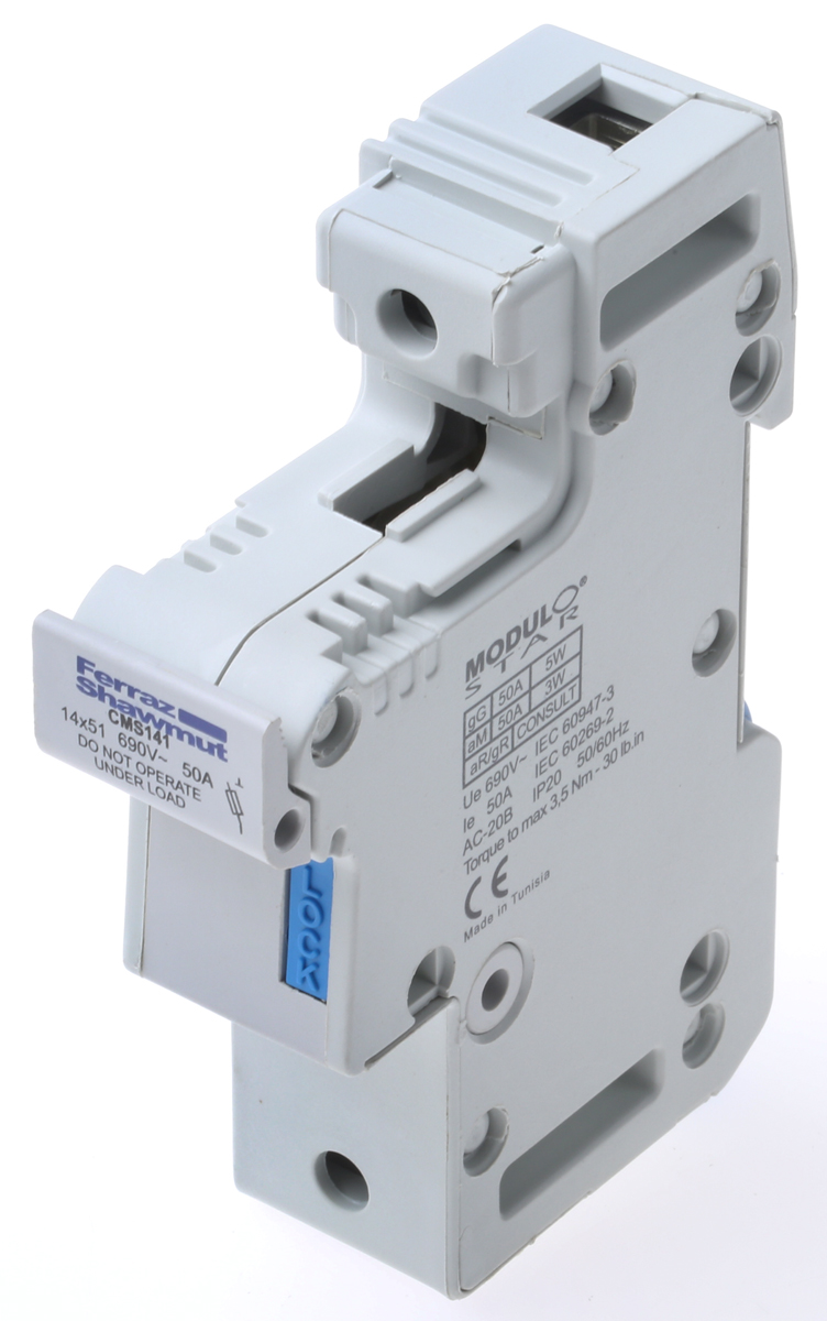 This is 50A Rail Mount Fuse Holder for 14 x 51mm Fuse 690V ac/dc manufactured by Mersen. The manufacturer part number is A331016. The product has a current rating of 50a. Moreover, the product has a nominal 690v ac voltage rating. A fuse with a 14 x 51mm size. It has equipped with 1p poles.