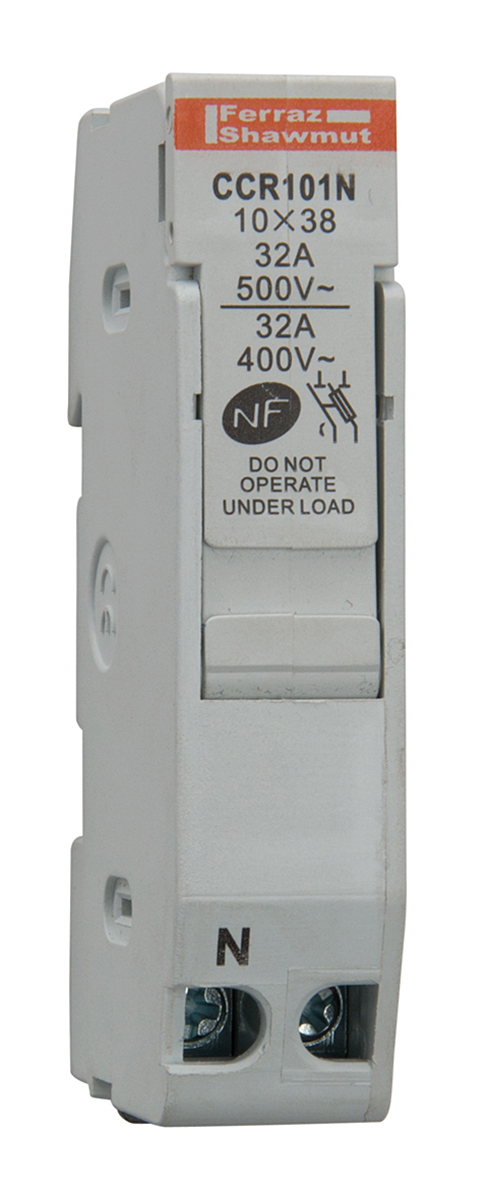 This is Rail Mount Fuse Holder 500V manufactured by Mersen. The manufacturer part number is H215655. The product has a current rating of 32a. Moreover, the product has a nominal 690v ac voltage rating. A fuse with a 10 x 38mm size. It has equipped with 1p+n poles.