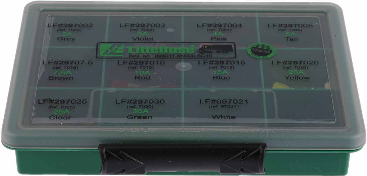 This is Littlefuse Automotive Fuse Kit manufactured by Littelfuse. The manufacturer part number is 00950011XXN. It integrates a automotive fuse type.