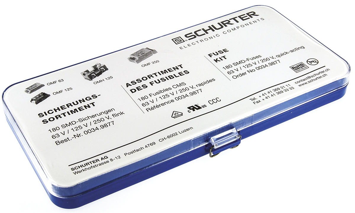This is Non-Resettable Fuse Kit manufactured by Schurter. The manufacturer part number is 0034.9877. It integrates a non-resettable fuse type.