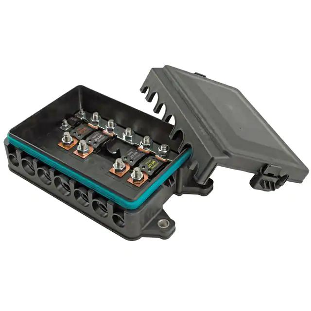 This is manufactured by Littelfuse Inc.. The manufacturer part number is 07981002ZXS. It is assigned with possible HTSUS value of 8536.90.8530. The product is rohs3 compliant. Moreover, it has bolt down terminal style. In addition, it is reach unaffected. The product is suitable for use with mega®, midi®. It is shipped in bulk. Furthermore, the product is galvanized with excellent nickel contact finishing. Its typical moisture sensitivity level is not applicable. It has a long 10 weeks standard lead time. It integrates 6 circuits. Additionally, the product's output is 240 a The product has a horizontal and vertical orientation. The product is available in chassis mount configuration. power distribution module Fuse holder type. The product ltx, is a highly preferred choice for users. It integrates a bolt down fuse type. It carries a 32v of voltage. The product is designated with the ear99 code number The product is made from sturdy copper materials.