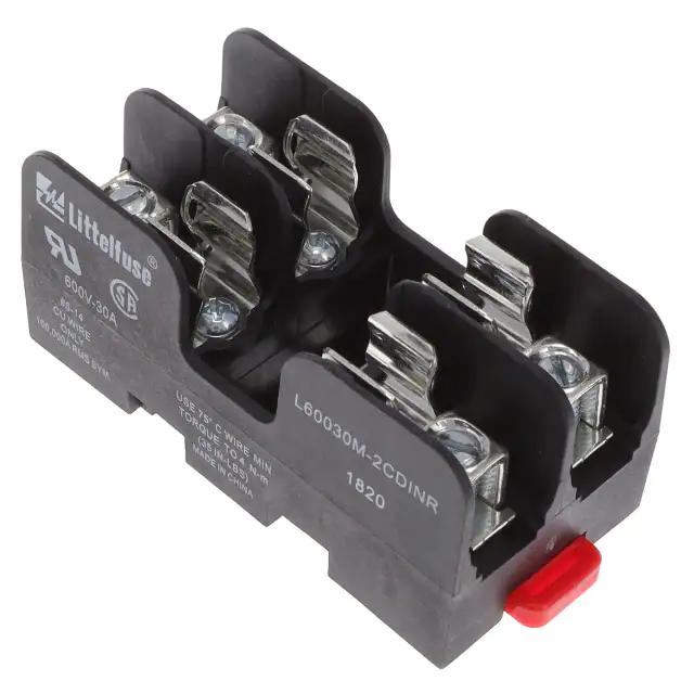 This is manufactured by Littelfuse Inc.. The manufacturer part number is L60030M2CDINR. It is assigned with possible HTSUS value of 8536.90.8585. The product is rohs3 compliant. Moreover, it has box lug terminal style. In addition, it is reach unaffected. The product is suitable for use with 5ag, 13/32" x 1-1/2" (midget). It is shipped in box. A fuse with a 0.394" dia x 1.496" l (10mm x 38mm) size. Furthermore, the product is galvanized with excellent tin contact finishing. Its typical moisture sensitivity level is 1 (unlimited). It has a long 20 weeks standard lead time. It integrates 2 circuits. Additionally, the product's output is 30 a The product is available in din rail configuration. block Fuse holder type. The product l600, is a highly preferred choice for users. It integrates a cartridge fuse type. It carries a 600v of voltage. The product is designated with the ear99 code number The product is made from sturdy copper alloy materials.