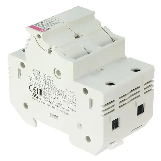 This is manufactured by American Electrical Inc.. The manufacturer part number is 2560003. It is assigned with possible HTSUS value of 8538.90.8180. The product is rohs3 compliant. In addition, it is reach unaffected. The product is suitable for use with 14mm x 51mm. It is shipped in box. A fuse with a 0.551" dia x 2.008" l (14mm x 51mm) size. Its typical moisture sensitivity level is not applicable. It has a long 10 weeks standard lead time. It integrates 2 circuits. Additionally, the product's output is 50 a The product is available in din rail configuration. holder Fuse holder type. The product efd14, is a highly preferred choice for users. It integrates a cartridge fuse type. It carries a 600v of voltage. The product is designated with the ear99 code number