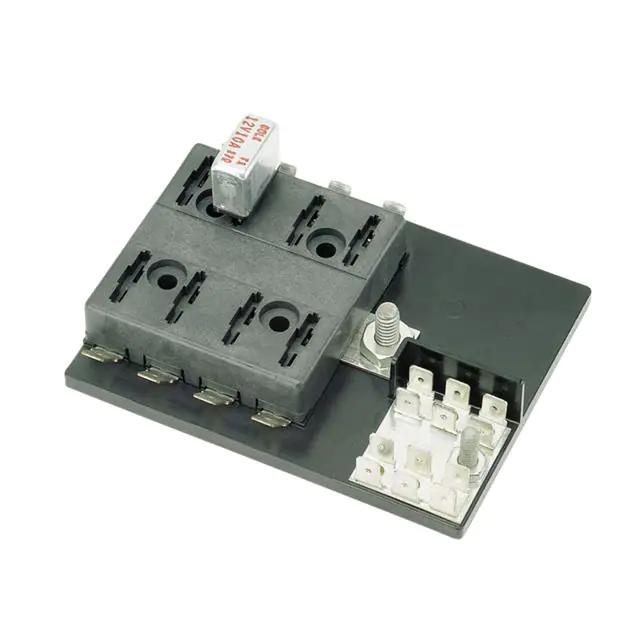 This is manufactured by Littelfuse Inc.. The manufacturer part number is 46379-8. It is assigned with possible HTSUS value of 8538.90.8180. The product is rohs3 compliant. Moreover, it has quick connect - 0.250" (6.3mm) terminal style. In addition, it is reach unaffected. The product is suitable for use with atc, ato. It is shipped in bulk. A fuse with a 0.75" l x 0.2" w (19.1mm x 5.1mm) size. Its typical moisture sensitivity level is 1 (unlimited). It has a long 14 weeks standard lead time. It integrates 8 circuits. Additionally, the product's output is 150 a The product is available in panel mount configuration. block Fuse holder type. The product ato®, is a highly preferred choice for users. It integrates a blade fuse type. It carries a 32v of voltage. The product is designated with the ear99 code number