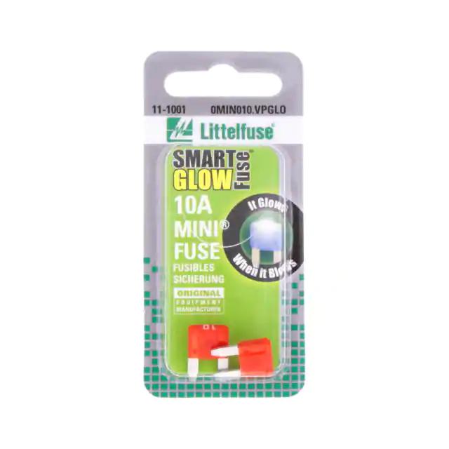 This is manufactured by Littelfuse Inc.. The manufacturer part number is 0MIN010.VPGLO. It is assigned with possible HTSUS value of 8536.10.0040. The product is rohs3 compliant. 32 v of DC voltage rating. It is approved by sae, ul. Moreover, the product comes in [Package/ Case]. The product exhibits 32 v of AC voltage rating. In addition, it is reach unaffected. It responds within fast blow. It is shipped in bulk. The product's diameters include 0.429" l x 0.150" w x 0.346" h (10.90mm x 3.80mm x 8.80mm). It has a long 10 weeks standard lead time. Additionally, the product's output is 10 a Its typical moisture sensitivity level is not applicable. The product is available in requires holder configuration. It has a classic red colour. The product mini®, is a highly preferred choice for users. It integrates a automotive fuse type. The product is designated with the ear99 code number