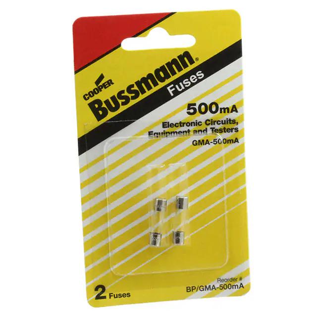 This is manufactured by Eaton - Bussmann Electrical Division. The manufacturer part number is BP/GMA-500MA. It is assigned with possible HTSUS value of 8536.10.0040. The product is rohs compliant. Moreover, the product comes in [Package/ Case]. The product exhibits 125 v of AC voltage rating. It responds within fast blow. It is shipped in bulk. The product's diameters include 0.205" dia x 0.787" l (5.20mm x 20.00mm). It has a long 5 weeks standard lead time. Additionally, the product's output is 500 ma Its typical moisture sensitivity level is 1 (unlimited). The product is available in requires holder configuration. The product gma, is a highly preferred choice for users. It integrates a cartridge, glass fuse type. The product is designated with the ear99 code number