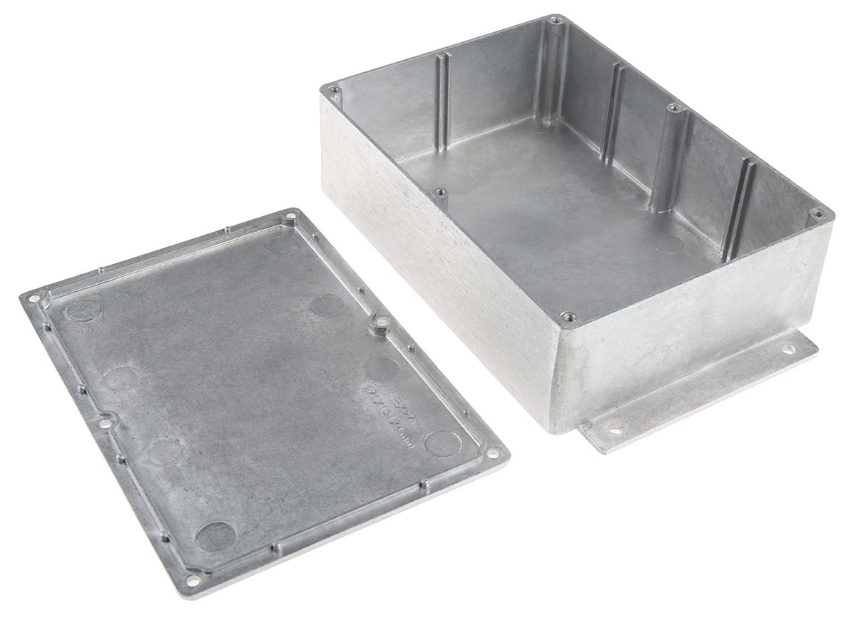 This is Aluminium Enclosure Shielded Flanged 201.7 x 121.2 x 55.3mm manufactured by RS Pro. The manufacturer part number is 517-3771. The product's body is nicely designed from die cast aluminium materials.