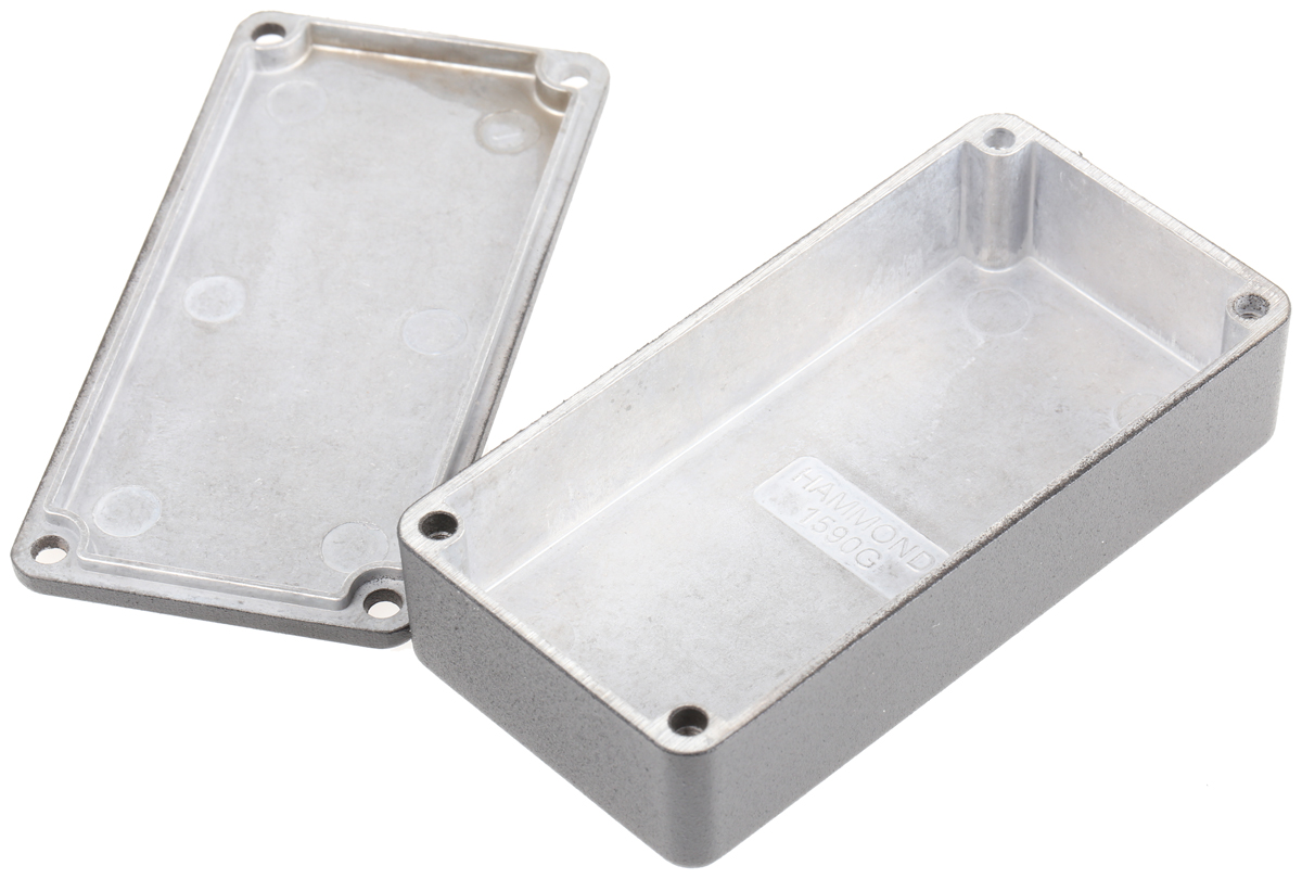 This is 1590 Aluminium Enclosure IP54 Shielded 100 x 50 x 21mm manufactured by Hammond. The manufacturer part number is 1590GBK. The typical product's weight is 104g. The product 1590, is a highly preferred choice for users. The product's body is nicely designed from die cast aluminium materials.