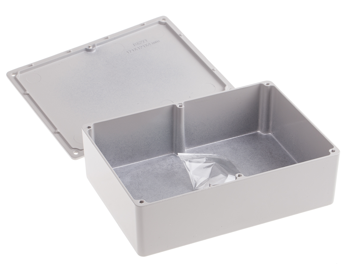 This is Aluminium Enclosure Shielded 171.9 x 120.9 x 55mm manufactured by RS Pro. The manufacturer part number is 517-3614. The product's body is nicely designed from die cast aluminium materials.