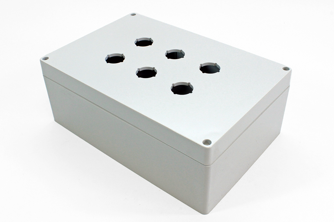 This is 1554 Push Button Enclosure 6 Hole Light Grey 22.5 mm 30.5 mm diameter PC manufactured by Hammond. The manufacturer part number is 1554MPB6. The product 1554pb, is a highly preferred choice for users. The product's body is nicely designed from polycarbonate materials.