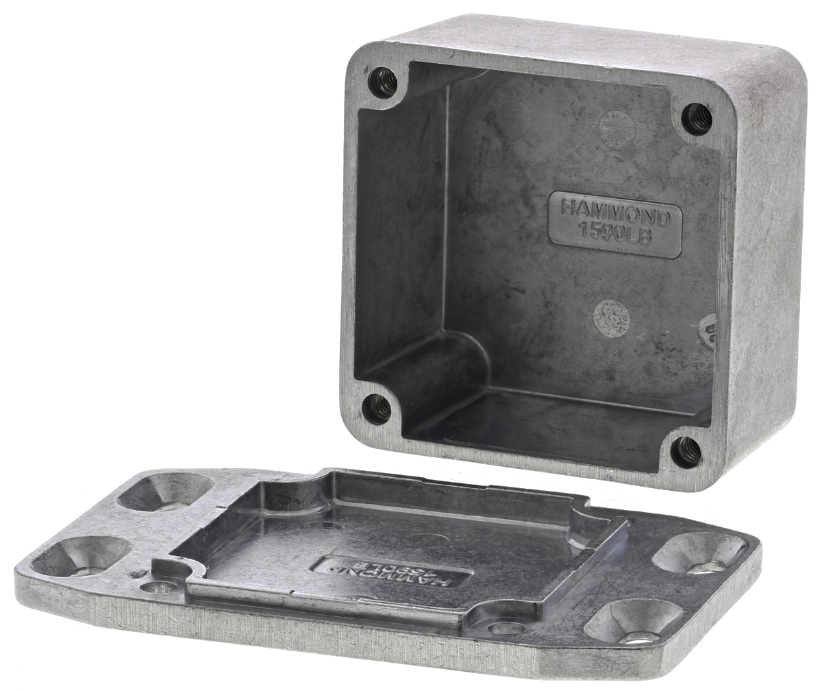This is 1590 Aluminium Enclosure IP65 Flanged 50.6 x 50.4 x 31 manufactured by Hammond. The manufacturer part number is 1590WLBFL. The typical product's weight is 75g. The product 1590, is a highly preferred choice for users. The product's body is nicely designed from die cast aluminium materials.