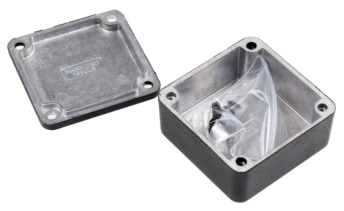 This is 1590 Aluminium Enclosure IP54 Shielded 50 x 50 x 21mm manufactured by Hammond. The manufacturer part number is 1590LLBBK. The typical product's weight is 68g. The product 1590, is a highly preferred choice for users. The product's body is nicely designed from die cast aluminium materials.