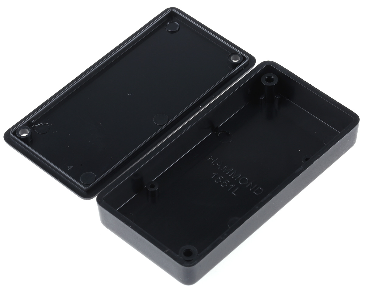 This is 1551 ABS Enclosure IP54 Flanged 80 x 40 x 15mm manufactured by Hammond. The manufacturer part number is 1551LBK. The typical product's weight is 22g. The product 1551, is a highly preferred choice for users. The product's body is nicely designed from abs materials.