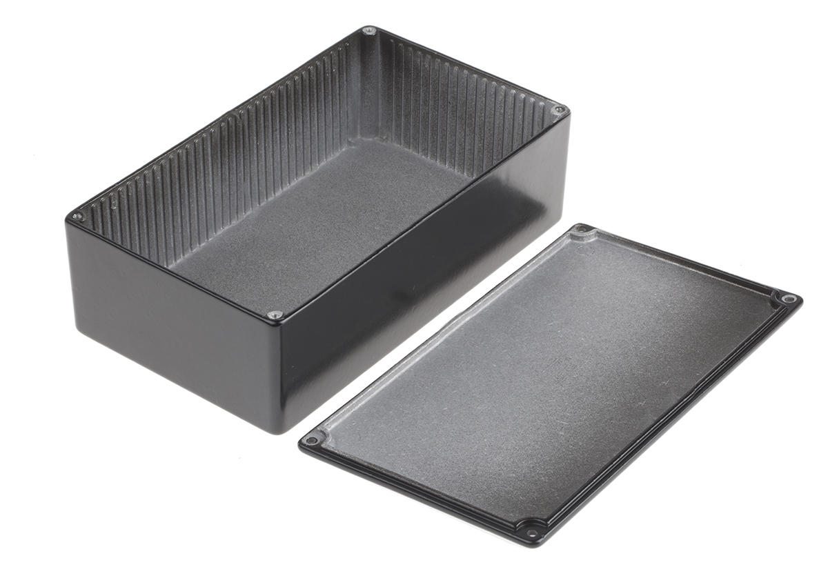This is Aluminium Enclosure IP54 Shielded 101 x 50 x 24.5mm manufactured by RS Pro. The manufacturer part number is 158-5306. The product's body is nicely designed from die cast aluminium materials.